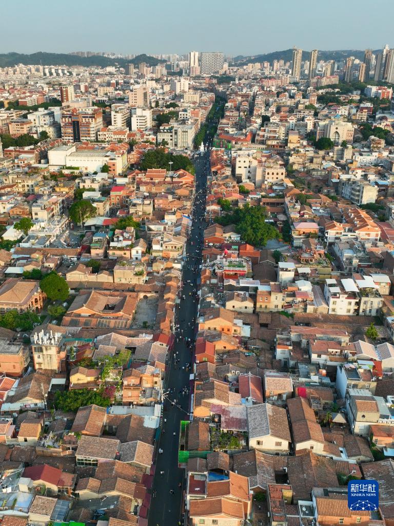 泉州西街(无人机照片,11月7日摄)。西街是泉州最早开发的街道和区域,保存也最为完整,将泉州众多文物胜迹和古街民居贯穿起来。