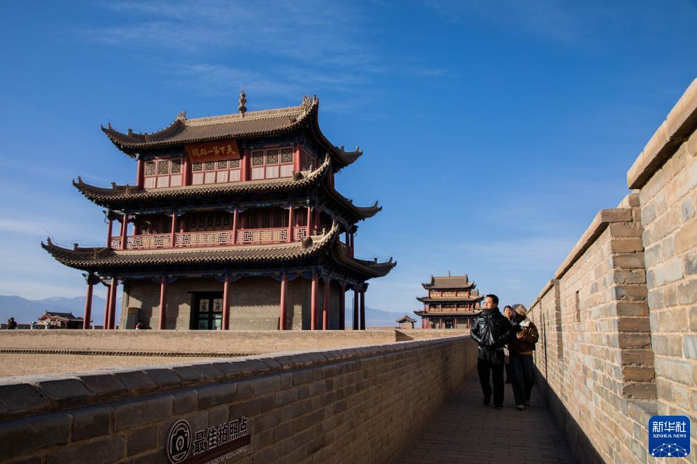 游客在甘肃省嘉峪关市的嘉峪关文物景区游览(12月12日摄)。