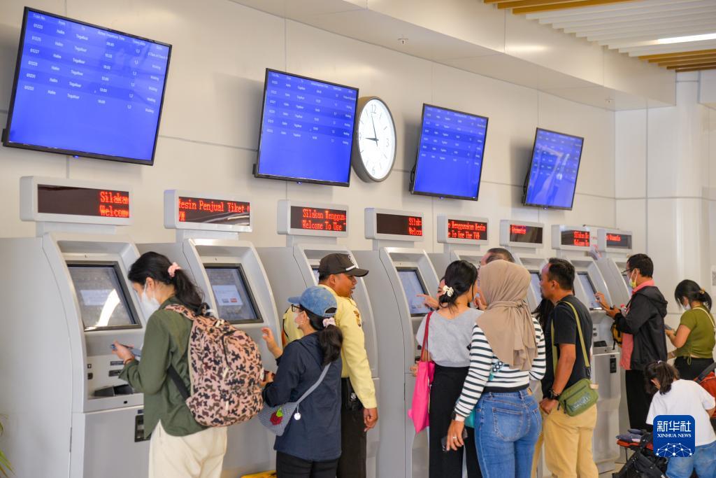 12月17日,乘客在印度尼西亚雅加达哈利姆站的自助取票机前取票。