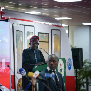 由中企承建、全线采用中国标准的拉各斯轻轨红线项目一期2月29日在尼日利亚拉各斯举行通车仪式,同时举行红线项目二期签约仪式,尼日利亚总统博拉·提努布出席仪式并试乘轻轨列车。