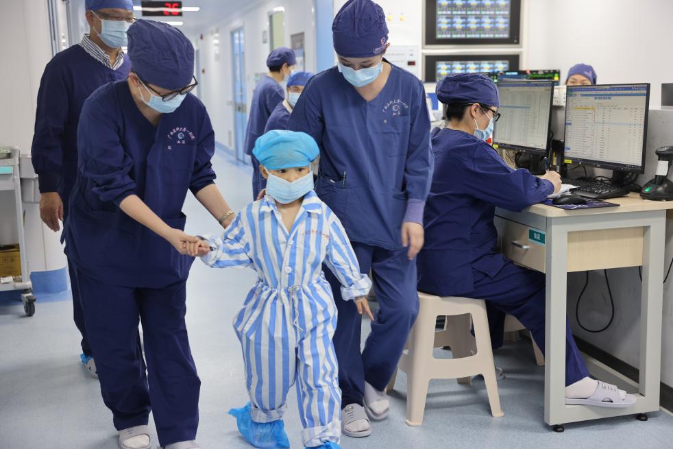 妮娜在医护人员的陪同下入住移植仓(2023年11月17日摄)。新华社发(广西医科大学第一附属医院供图)