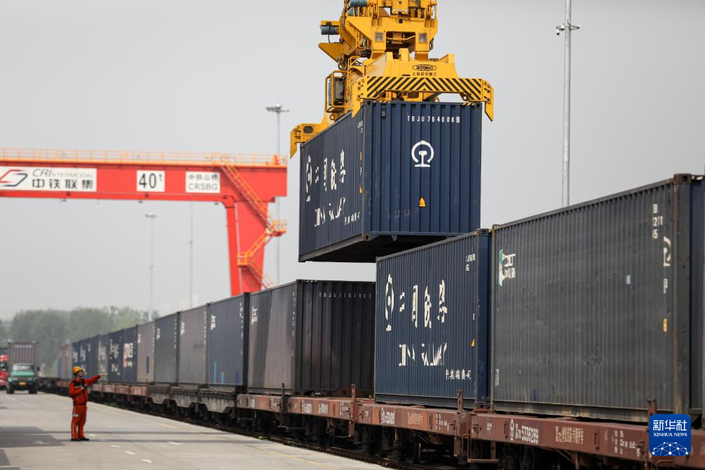 4月11日,在国铁集团郑州局圃田站,首趟中老铁路(郑州—万象)国际货运列车在做发车前准备。