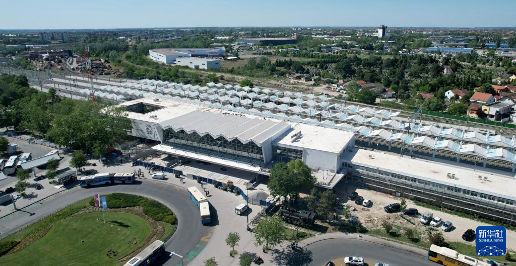 这是4月29日拍摄的塞尔维亚诺维萨德火车站(无人机照片)。