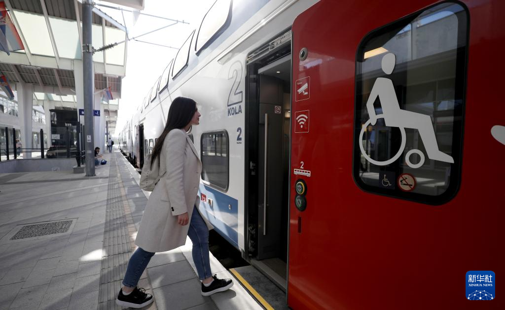 4月29日,亚历山德拉搭乘匈塞铁路诺维萨德至贝尔格莱德的列车回家。亚历山德拉今年27岁,家住贝尔格莱德,工作地点在诺维萨德,每个工作日往返于两个城市。匈塞铁路塞尔维亚境内的贝尔格莱德至诺维萨德段(贝诺段)通车后,两地通行时间缩短为30分钟左右,大大减少了她的日常通勤时间。她说,这是中国送给塞尔维亚的重要礼物。
