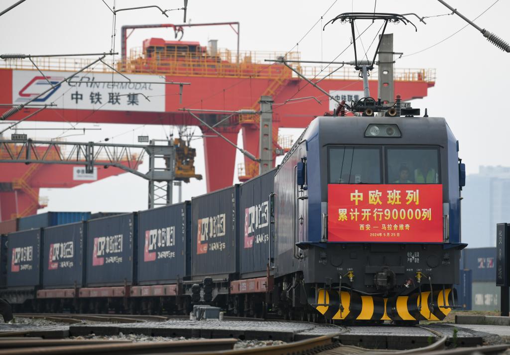 新华社西安5月25日电 5月25日8时40分,随着X8157次中欧班列(西安—马拉舍维奇)从西安国际港站开出,中欧班列累计开行9万列。