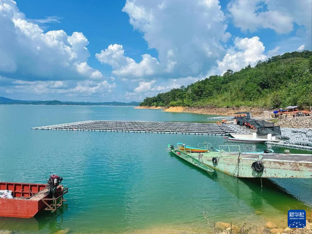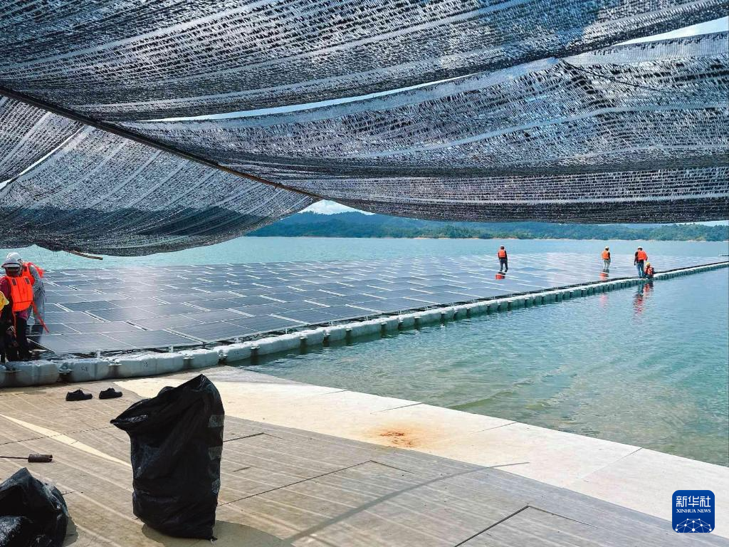 这张资料照片是在马来西亚沙捞越拍摄的建设中的漂浮光伏发电项目。该项目由中国能建江苏省电力设计院有限公司承建。