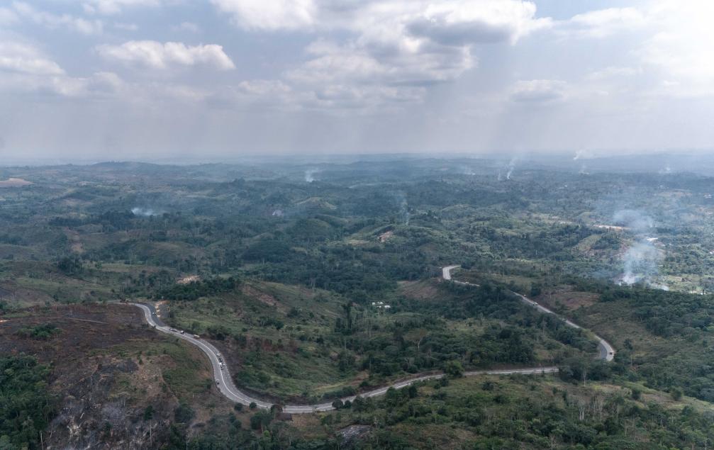这是8月1日拍摄的连接布拉柴维尔和黑角的刚果(布)国家一号公路(无人机照片)。新华社记者 王冠森 摄
