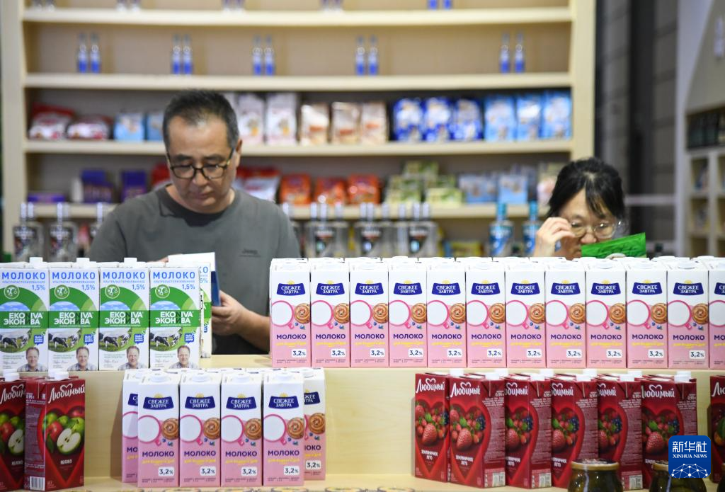 9月20日,观众在博览会现场选购俄罗斯产品。
