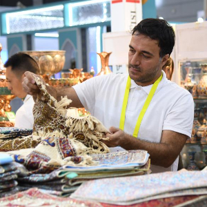 9月20日,来自伊朗的参展商(左一)向观众介绍产品。