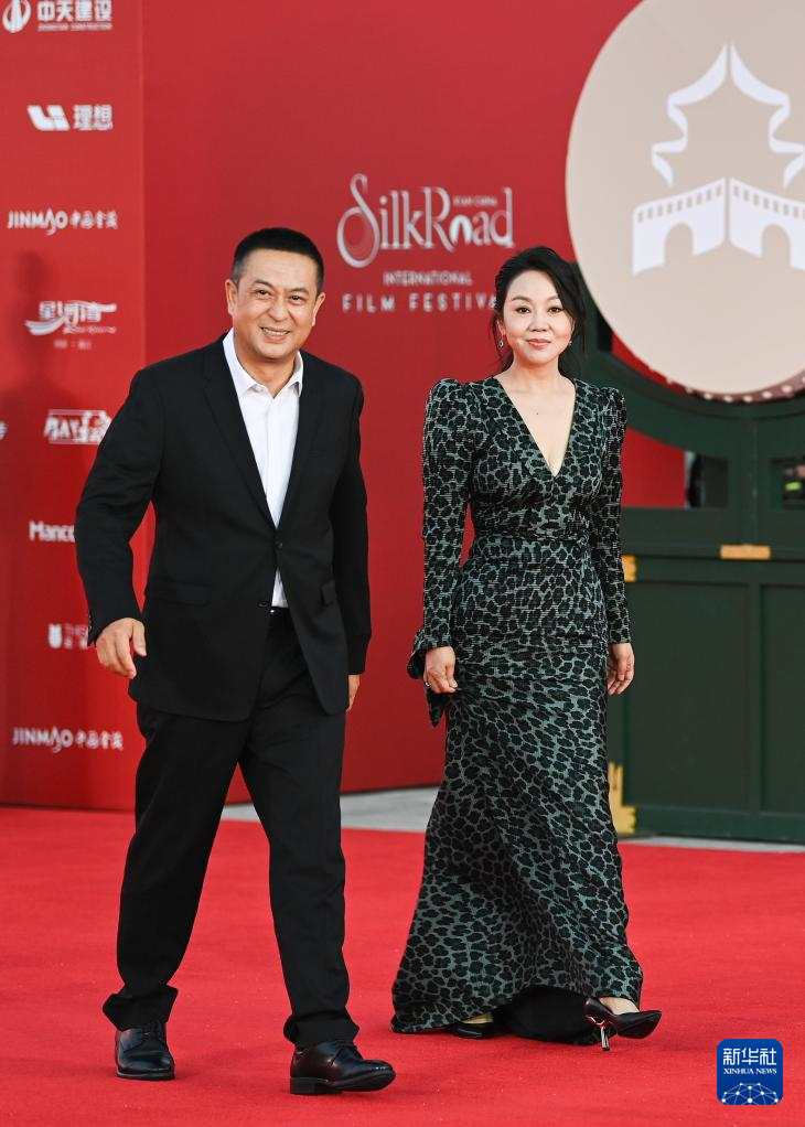 9月21日,演员张嘉益(左)、闫妮亮相第十一届丝绸之路国际电影节开幕式红毯。