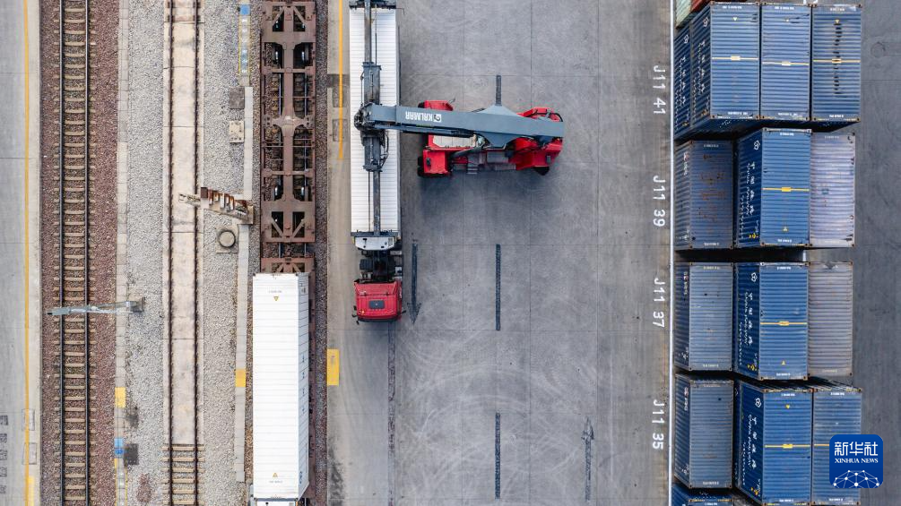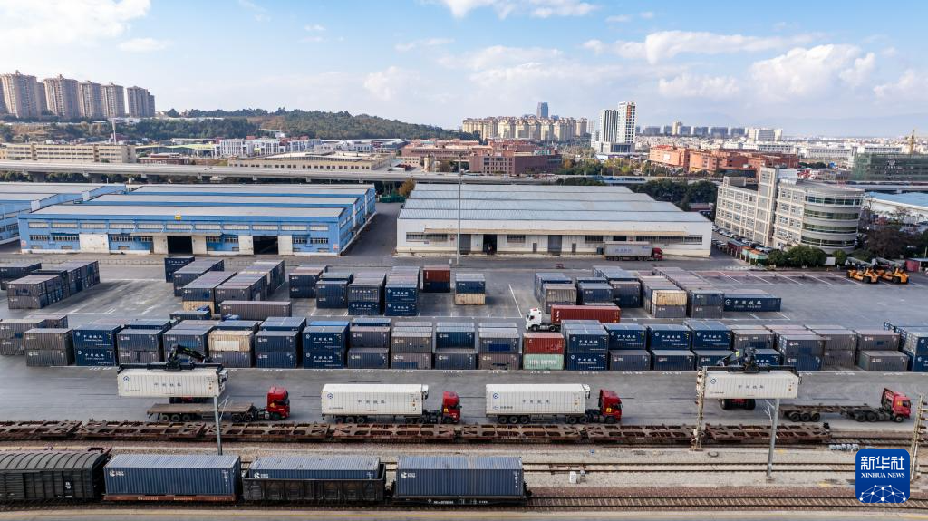 1月2日,中老铁路国际货物列车在云南省昆明市王家营西站进行装箱作业。
