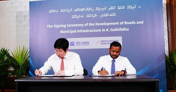 签约仪式在马总统府举行。马副总统拉蒂夫、多名内阁部长和中国驻马使馆临时代办何芬也参加了签约仪式。马尔代夫建设、住房和基础设施部长穆萨利卜与国机工程集团代表钱浩隽签署项目合同文件。