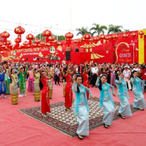 1月25日,演员在缅甸仰光举行的新春庆祝活动上表演舞蹈。