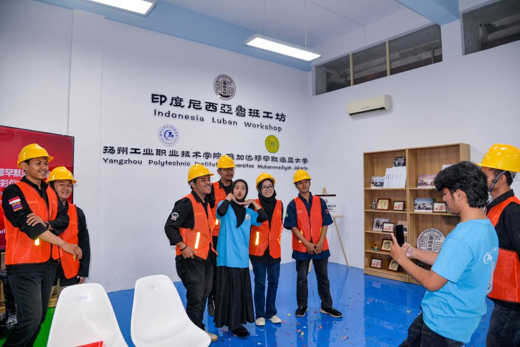 2月28日,在印度尼西亚雅加达,学生在印尼鲁班工坊智能制造中心揭牌剪彩仪式后合影。新华社记者 徐钦 摄
