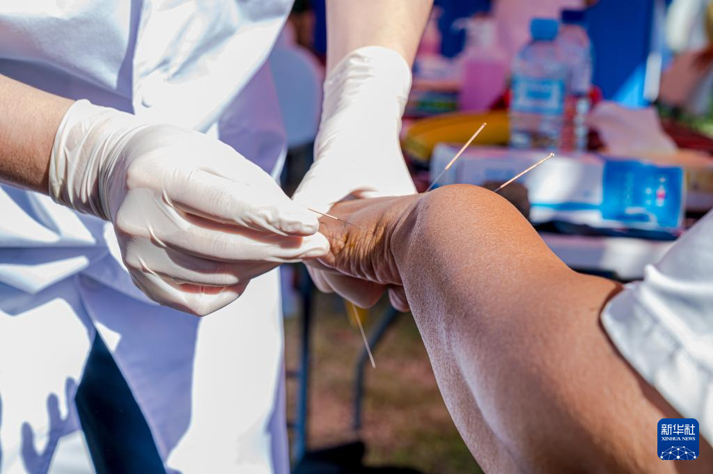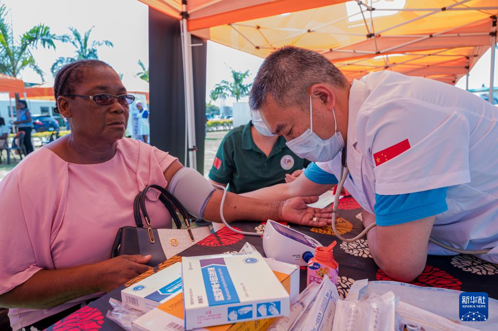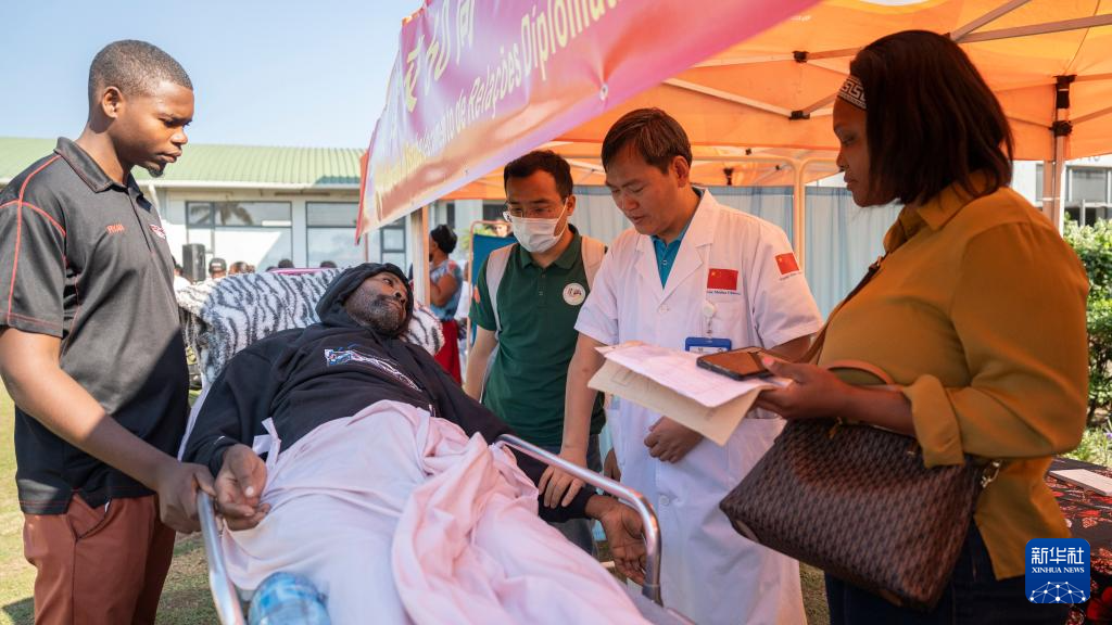 4月14日,在莫桑比克马托拉市,第25批中国援莫医疗队的医生为当地居民义诊。