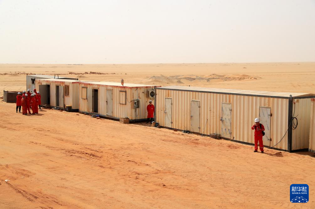 这是5月3日在埃及新河谷省的奥瓦伊纳特水井项目现场拍摄的工人生活用的临时简易板房。