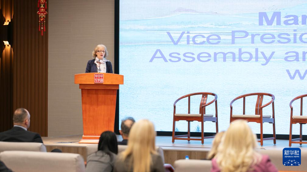 5月16日,在塞尔维亚首都贝尔格莱德,塞尔维亚国民议会副议长拉古什在“绿色议程”研讨会上致辞。