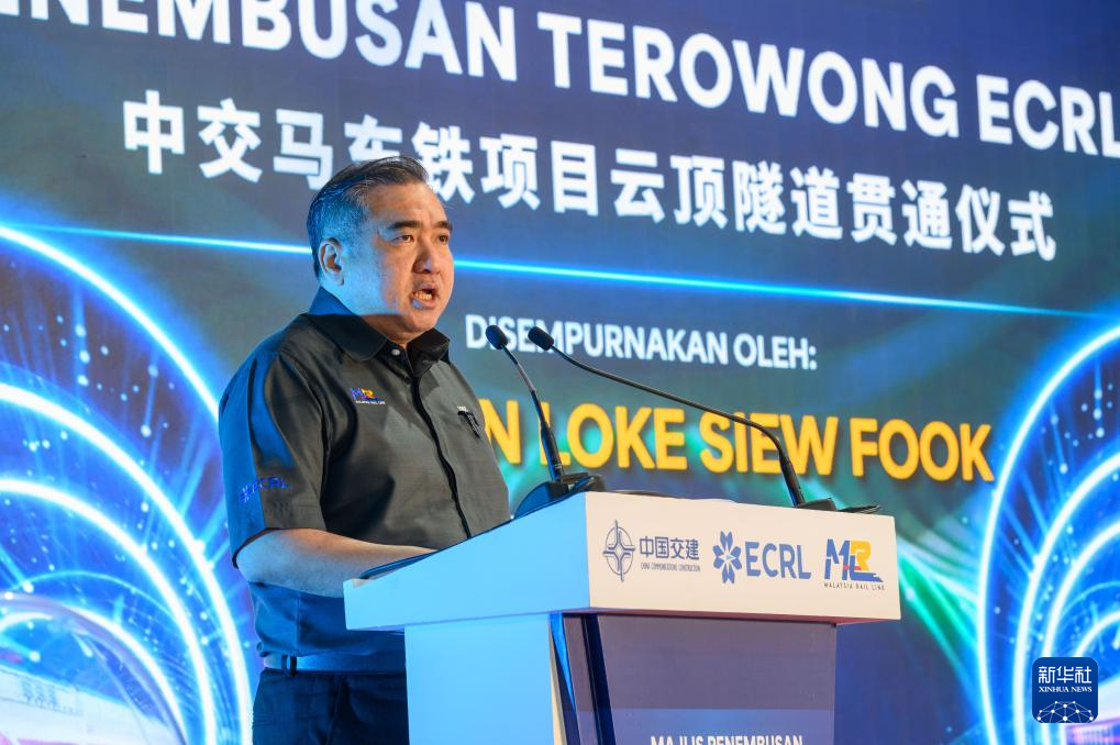 这是7月12日在马来西亚彭亨州拍摄的马来西亚东海岸铁路(马东铁)项目云顶隧道贯通仪式现场。