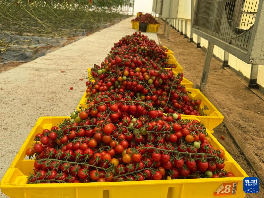这是7月4日在阿联酋艾因地区阿联酋绿色硅谷产业园拍摄的樱桃小番茄。 新华社记者 温新年 摄