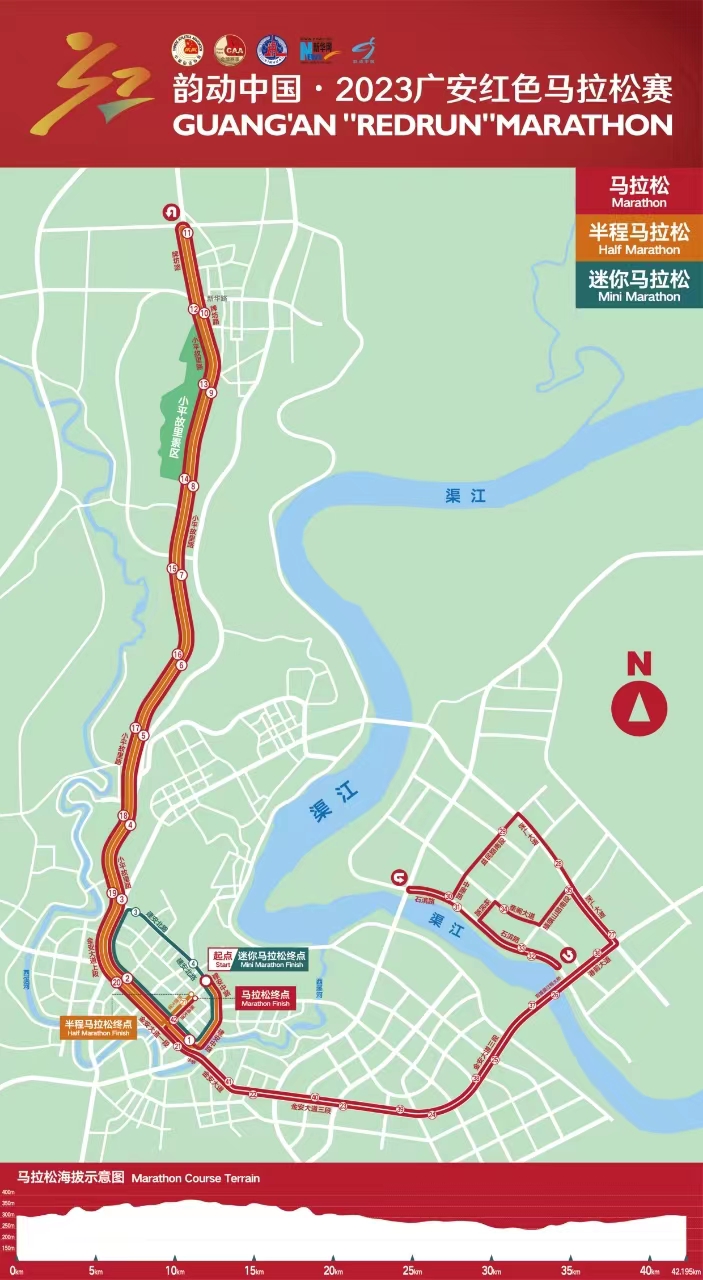 2018年和2019年广安红色马拉松连续两年获评中国田径协会金牌赛事,本届“红马”将上演怎样的“回归秀”?为进一步体现广安“红色基因”,展示广安发展成就,本次比赛线路进行了优化升级,分布更加侧重城区,起终点均设在思源广场,线路包含邓小平故里旅游区、吾悦广场、渠江红滩音乐公园、经济技术开发区等地,充分展示广安历史人文景观、商业风貌。