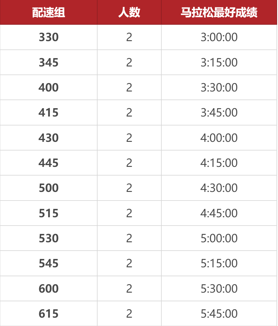 2、有良好的马拉松基础,且近两年最好马拉松成绩至少快于所报组别30分钟(有配速员领跑经验者优先);