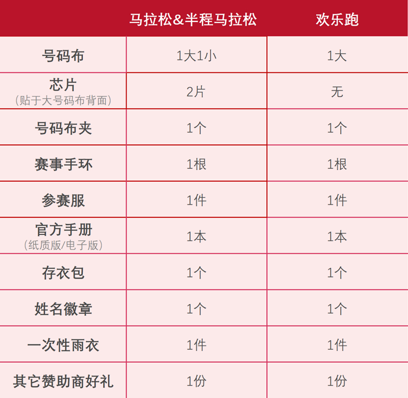 3. 因故无法前来现场领取参赛物品的选手申领方式请于赛后关注官网公告,选择赛后邮寄号码布、手环和芯片以外的参赛物品,因此产生的费用由选手本人承担;