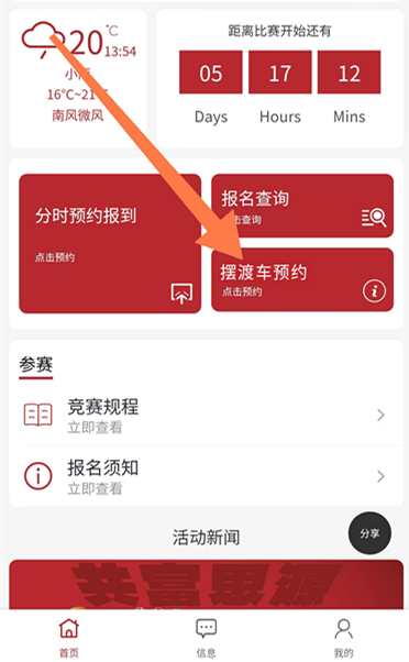 10月10日8:00-10月11日18:00期间,在广安红马「参赛助手」小程序中点击「摆渡车预约」,选择线路,即可完成预约。