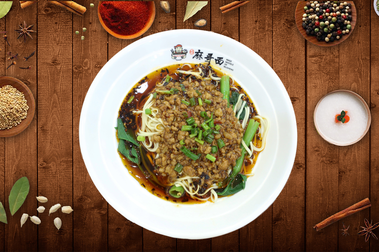 肥瘦兼容的猪肉颗颗混辣椒少汤拌匀的武胜麻哥面!