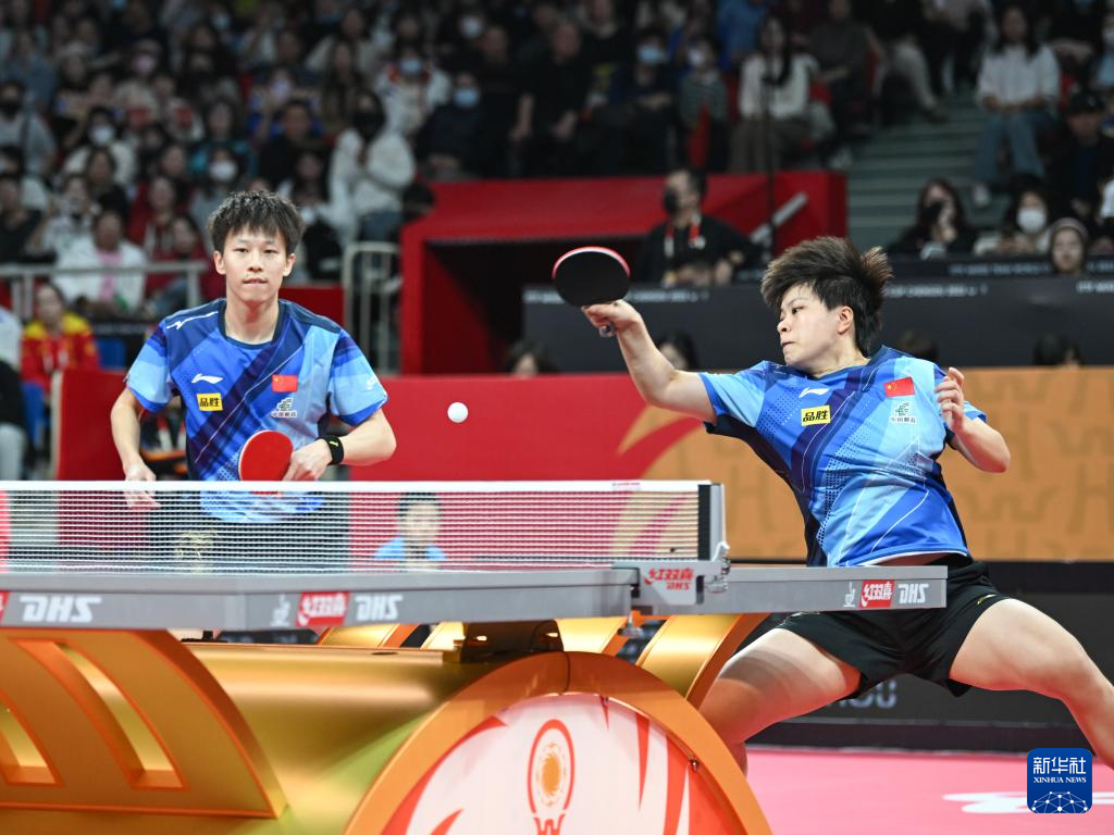 12月6日,中国队组合林高远/王艺迪(右)在混双比赛中。他们以2比1战胜斯洛伐克队组合泽林卡/库库洛娃。新华社记者 王曦 摄