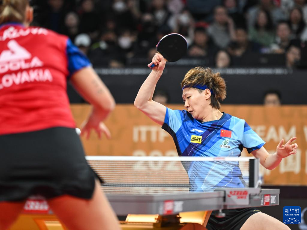 当日,在成都举行的2023年国际乒联混合团体世界杯第二阶段比赛中,中国队以8比1战胜斯洛伐克队。