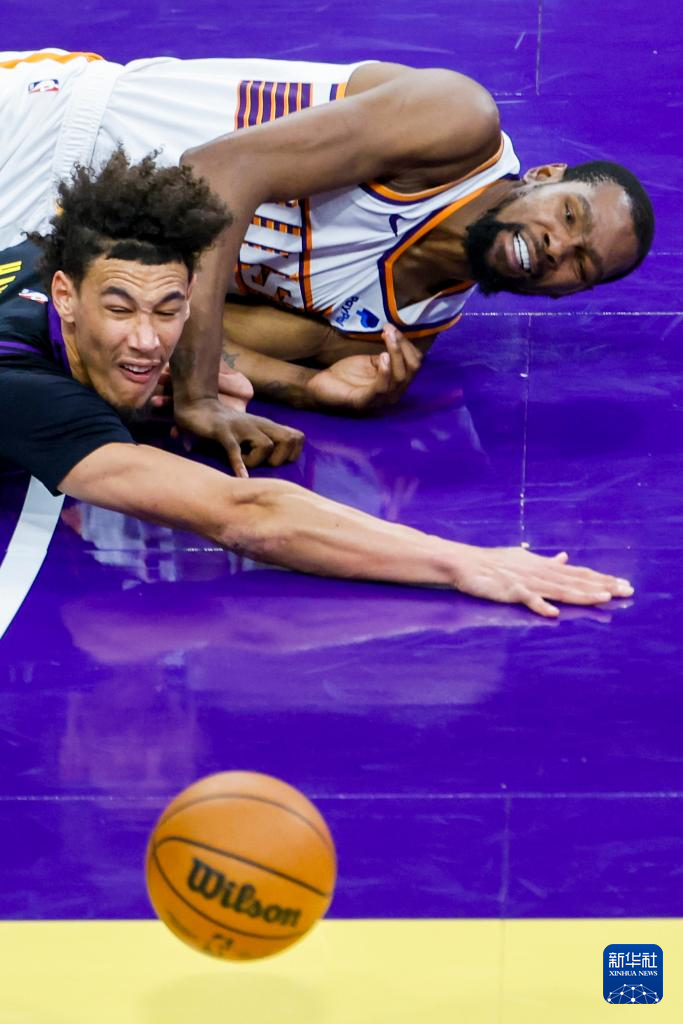 12月5日,太阳队球员凯文·杜兰特(右)在比赛中带球进攻。新华社发(赵汉荣摄)