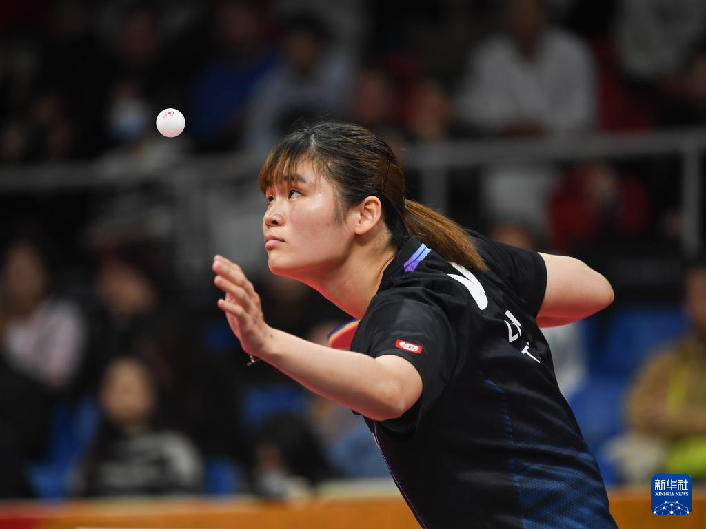 12月6日,中国台北队选手李昱谆在女单比赛中发球。她以0比3不敌日本队选手平野美宇。新华社记者 胥冰洁 摄