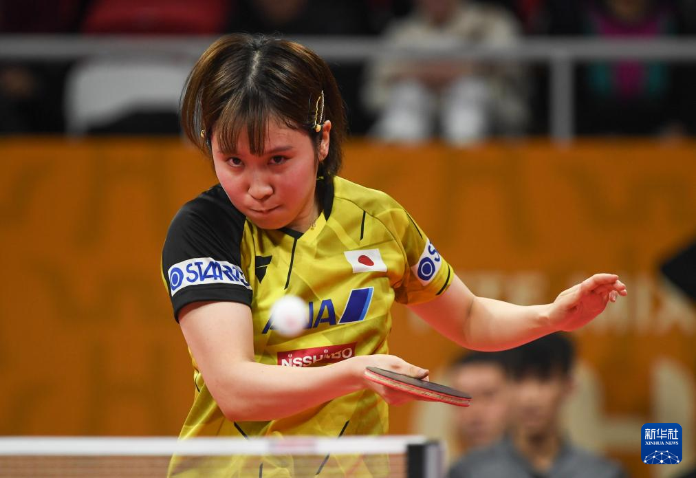 12月6日,日本队选手平野美宇在女单比赛中回球。她以3比0战胜中国台北队选手李昱谆。新华社记者 胥冰洁 摄