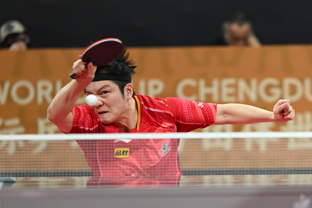 12月7日,中国队选手樊振东在男单比赛中回球。新华社记者 胥冰洁 摄
