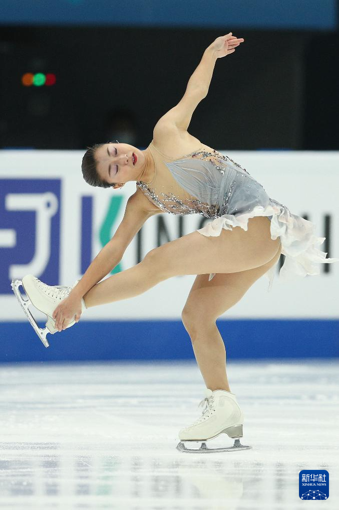 12月8日,日本选手坂本花织在比赛中。她以77.35分暂列第一。