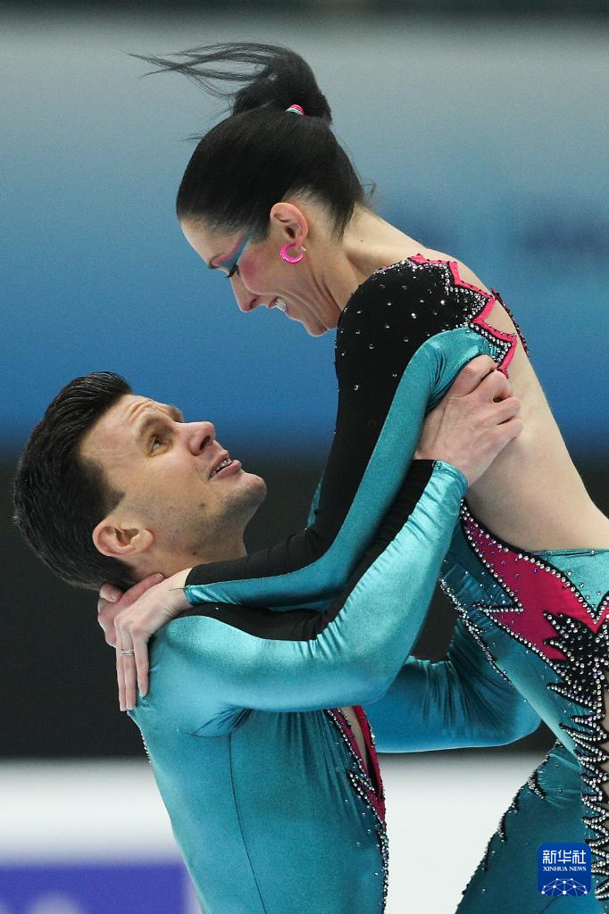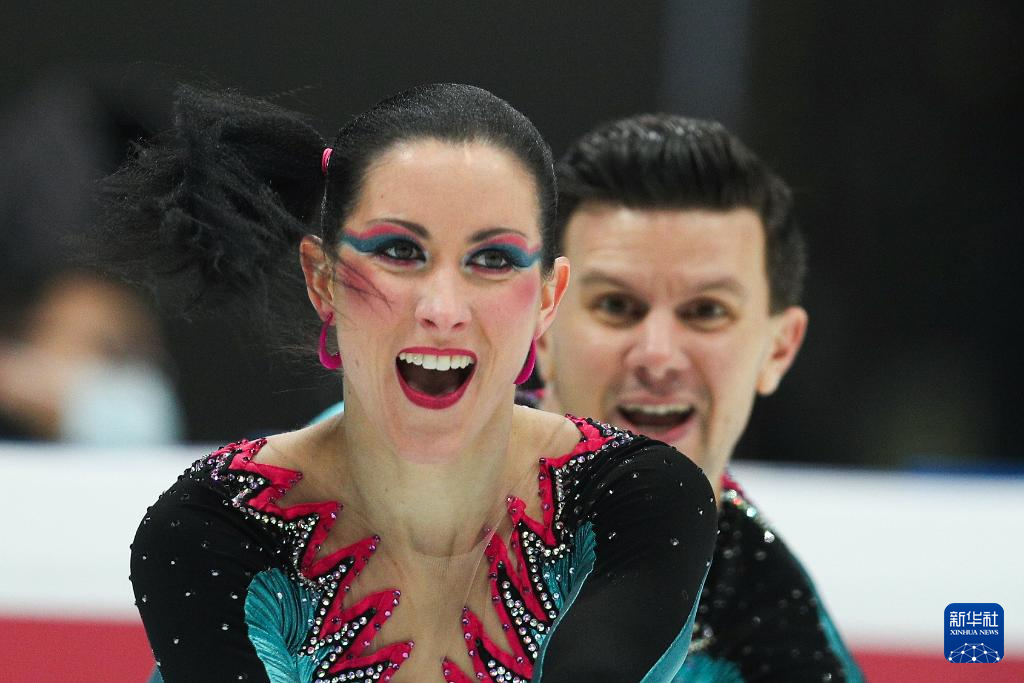 12月8日,美国组合麦迪逊·乔克(右)和埃文·贝茨在比赛中。他们以89.15分暂列第一。