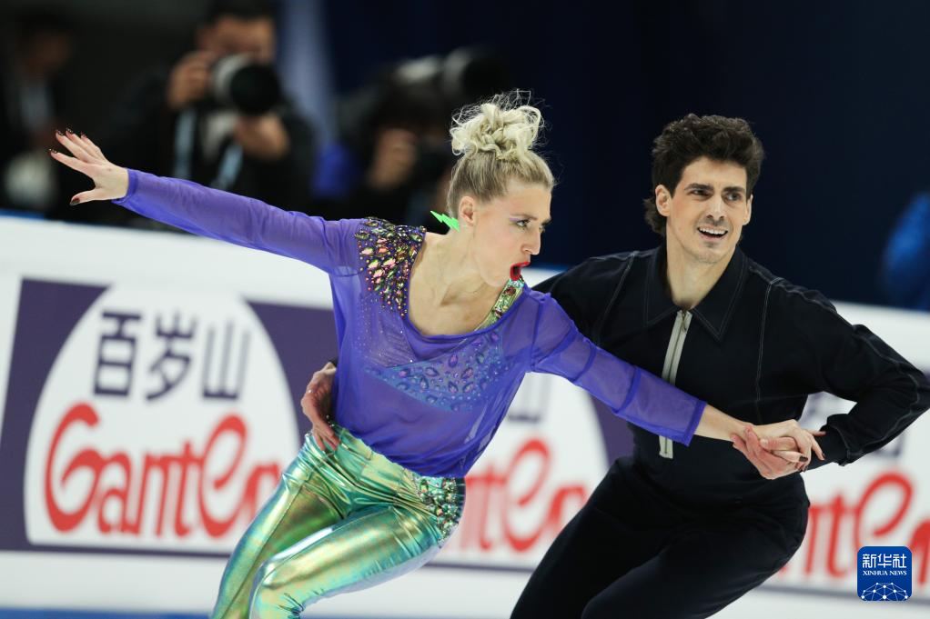 当日,2023-2024赛季国际滑联世界花样滑冰大奖赛总决赛冰舞韵律舞比赛在北京举行。