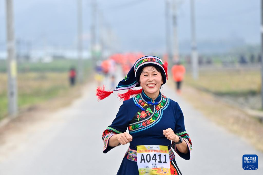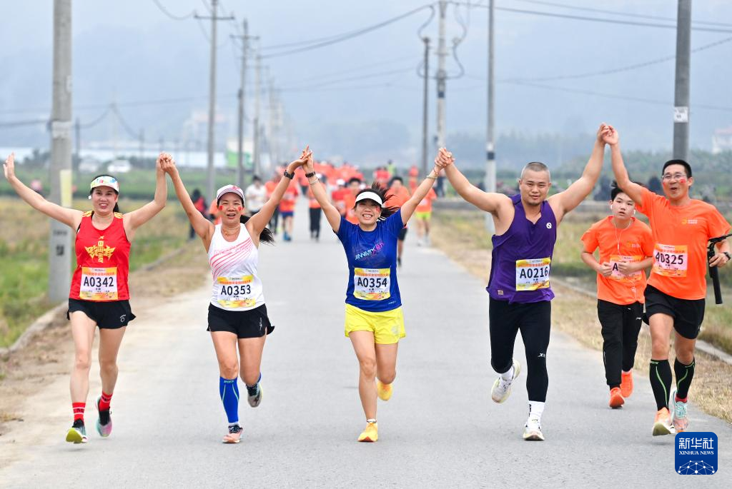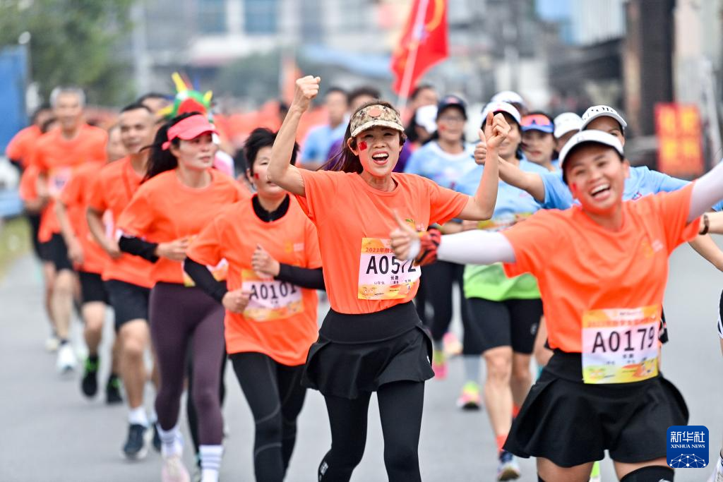 当日,广西柳州市融安县举行2023金桔村跑大赛,2500多名选手从县城起跑,沿着城郊公路、田间小路、乡村道路进行比赛,在村舍田野间感受运动的快乐。