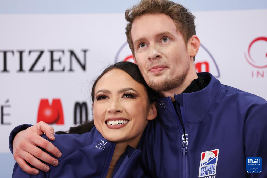 12月9日,美国组合乔克(右)/贝茨在冰舞自由舞比赛中。新华社记者 鞠焕宗 摄