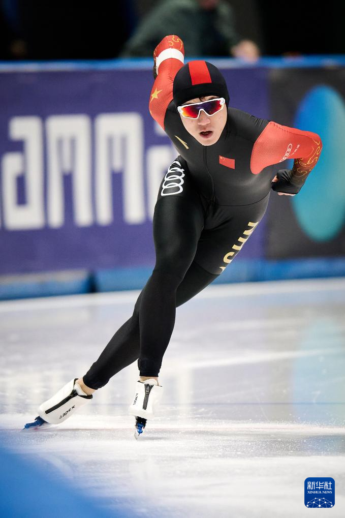 12月9日,中国选手韩梅在女子1500米A组比赛中。最终,她获得第四名。新华社发(拉法尔摄)