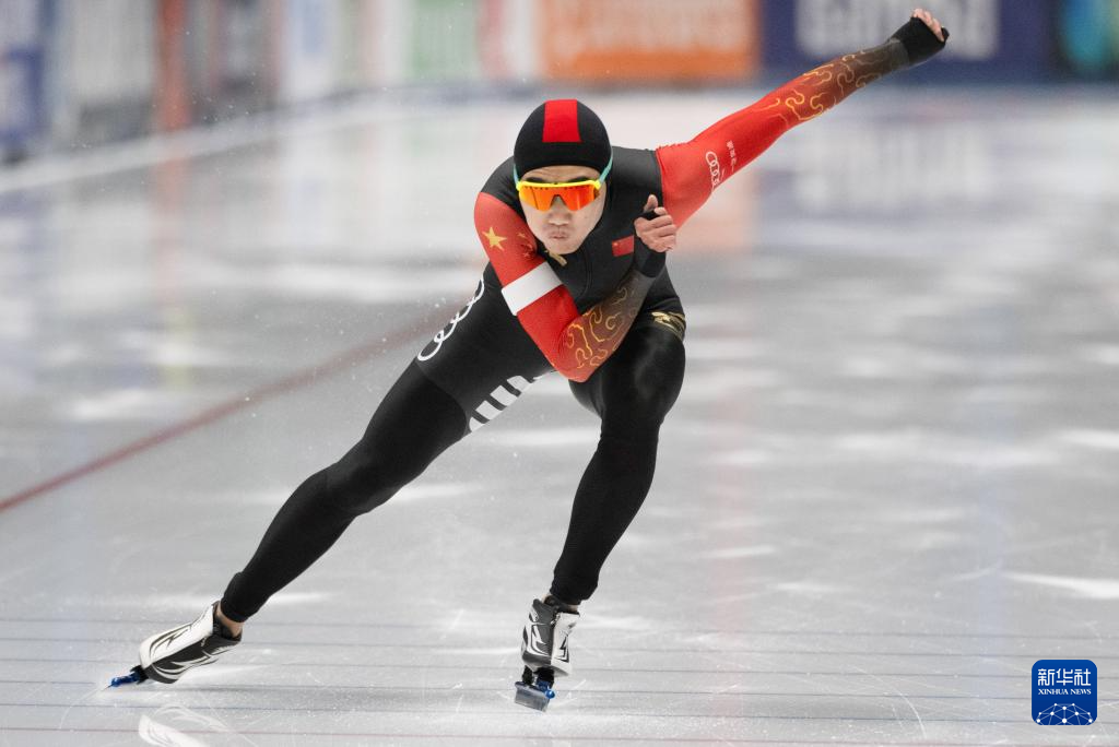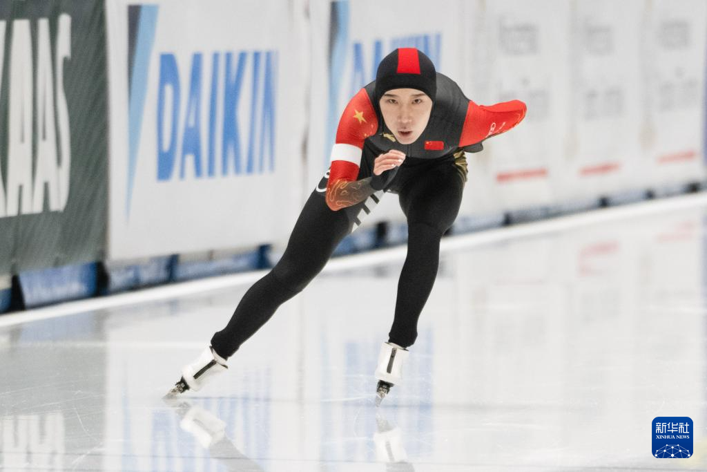 12月9日,中国选手高亭宇在男子500米A组第一次比赛中。最终,他以34秒70的成绩获得冠军。新华社发(拉法尔摄)