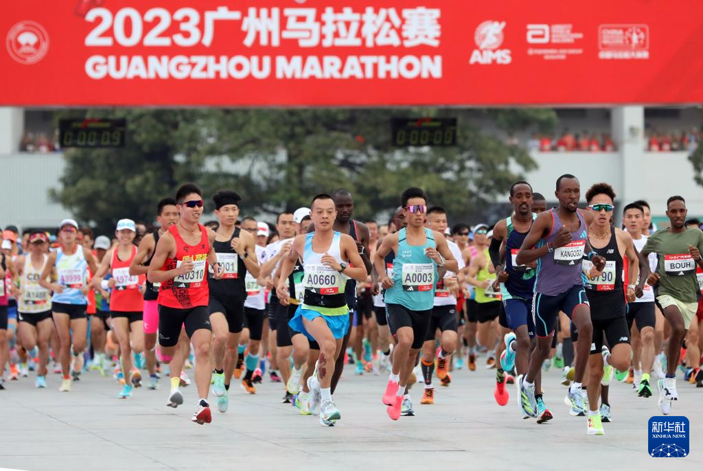 当日,2023广州马拉松赛鸣枪开跑。比赛设全程马拉松和半程马拉松两个项目。