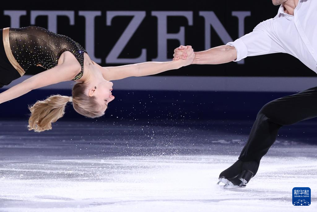 12月10日,双人滑冠军德国组合黑泽(左)/沃罗登在表演滑中。新华社记者 鞠焕宗 摄