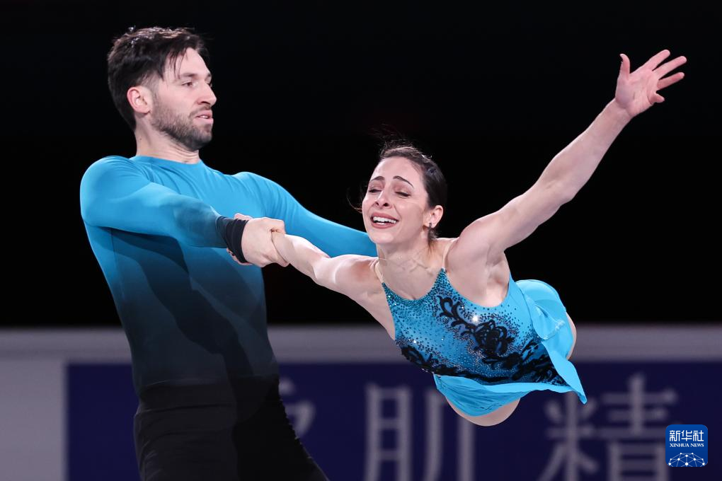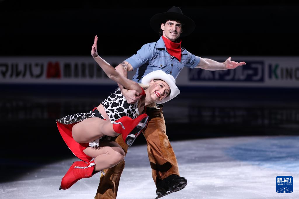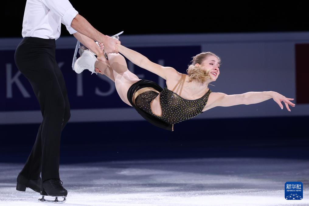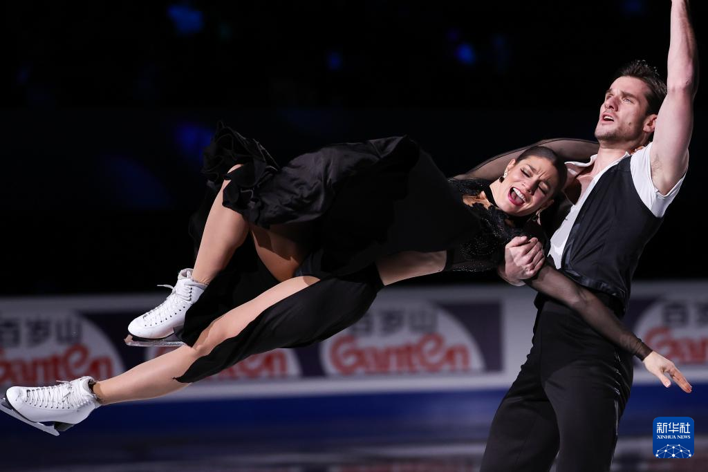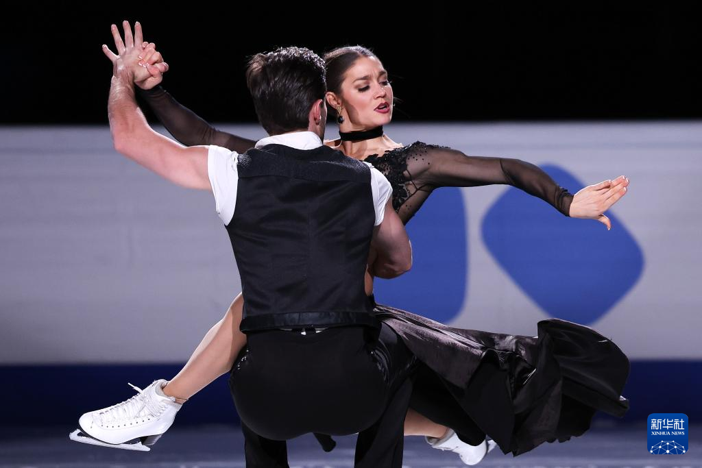 12月10日,冰舞冠军美国组合乔克(右)/贝茨在表演滑中。新华社记者 鞠焕宗 摄