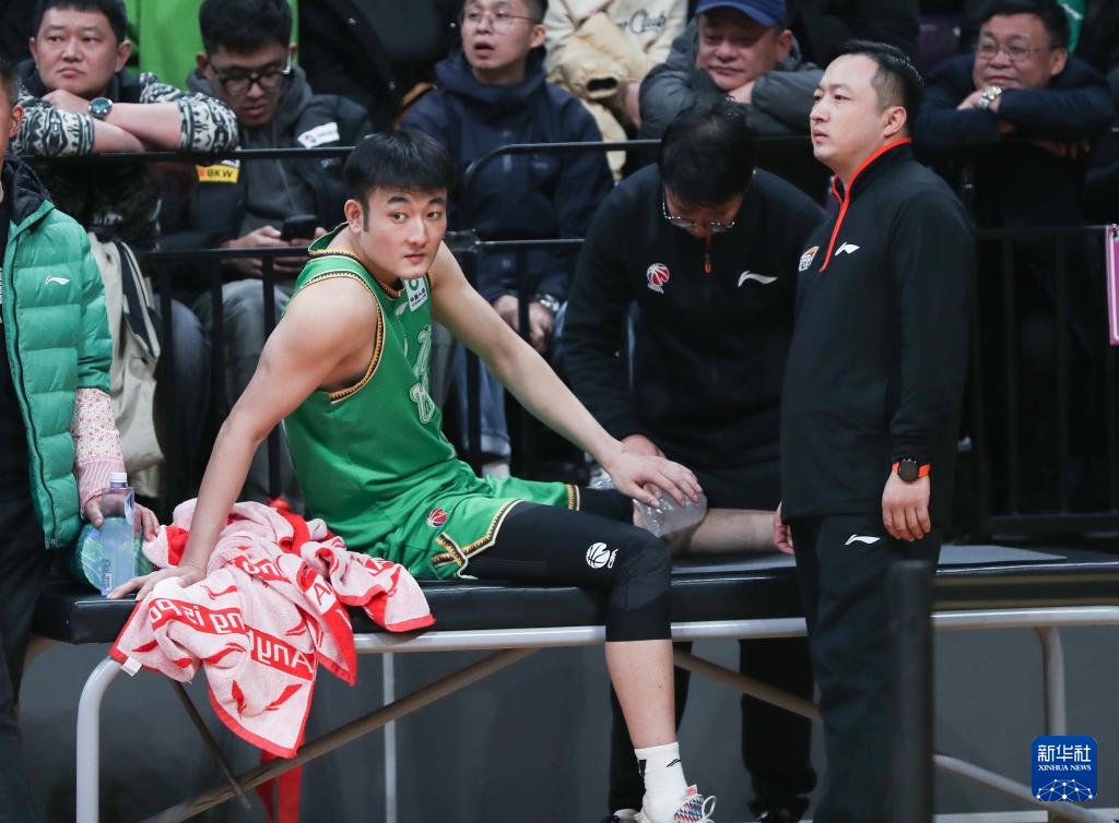 12月10日,辽宁本钢队球员丛明晨在比赛中受伤离场。新华社记者 龙雷 摄