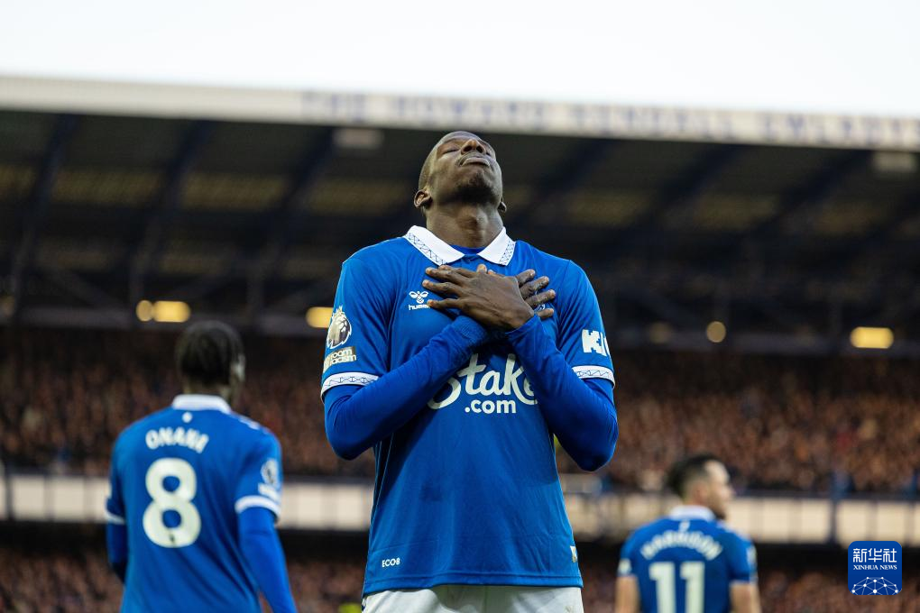 12月10日,埃弗顿队球员多宾在比赛中庆祝进球。新华社发