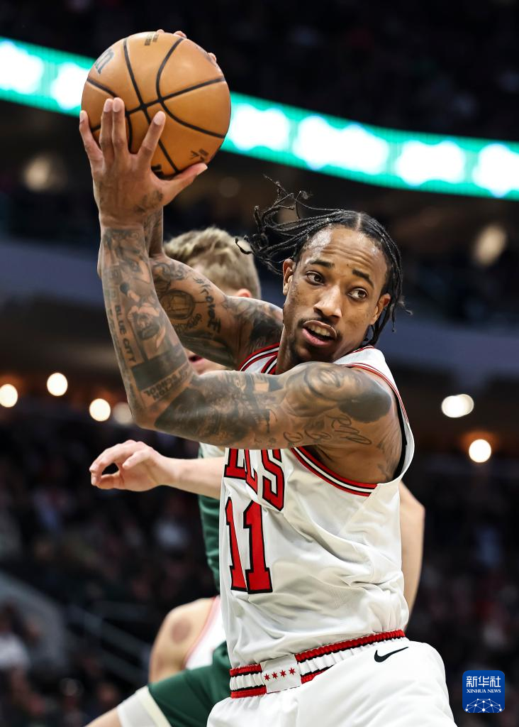 12月11日,公牛队球员德罗赞在比赛中拼抢。新华社发(乔尔·莱纳摄)
