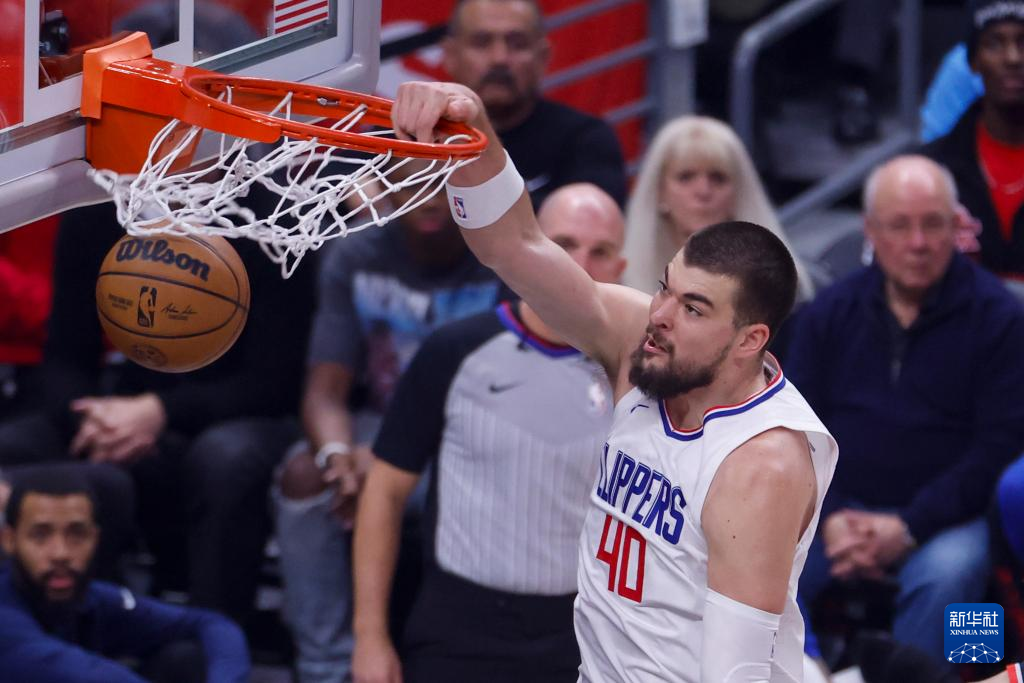 12月11日,快船队球员伊维察·祖巴茨在比赛中扣篮。新华社发(赵汉荣摄)