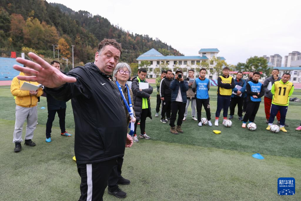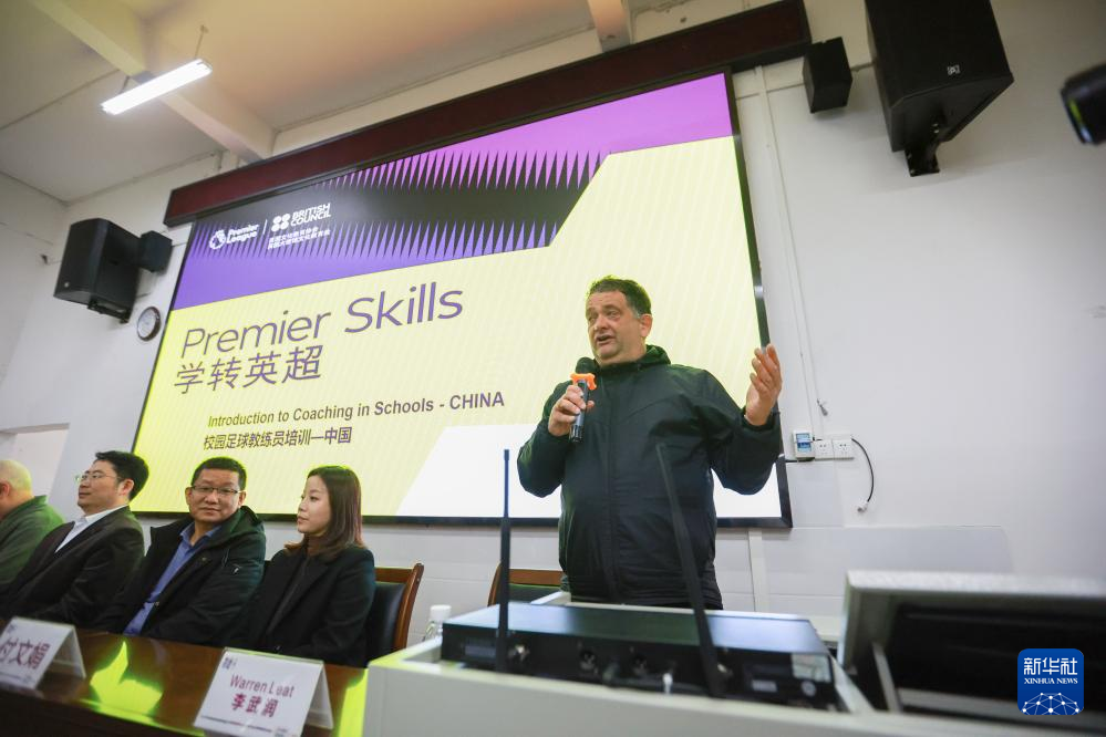 12月12日,英国大使馆文教处足球发展高级经理利特(右二)为参加“学转英超”基层足球教练培训项目的学员授课。新华社记者 刘续 摄