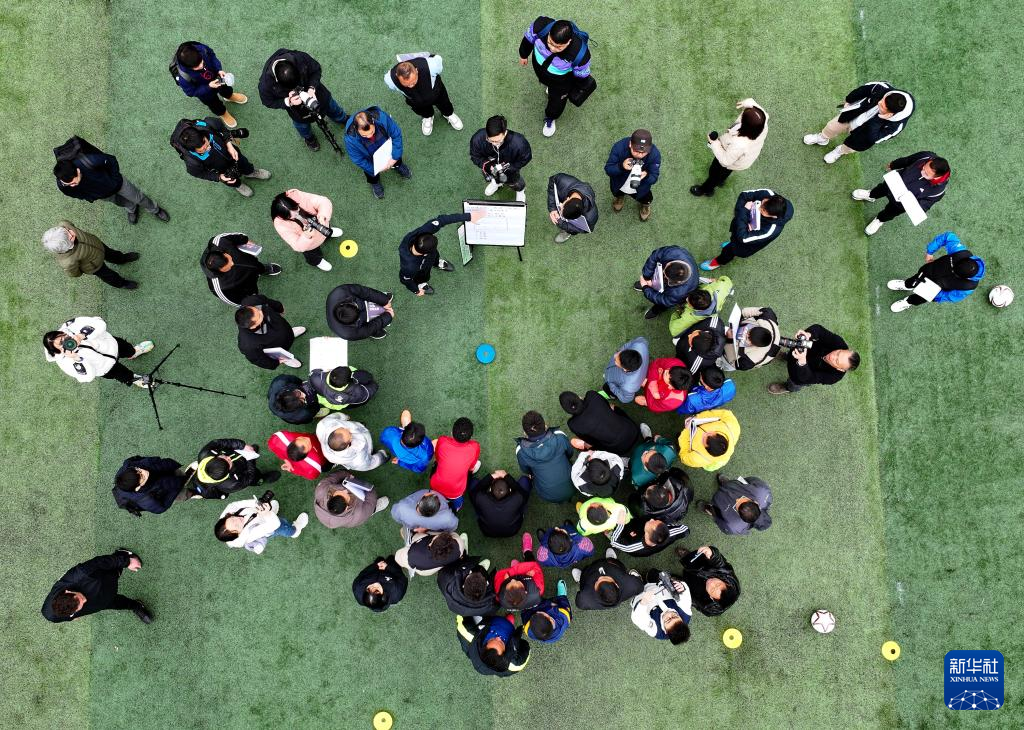 12月12日,学员参加“学转英超”基层足球教练培训项目(无人机照片)。新华社记者 刘续 摄